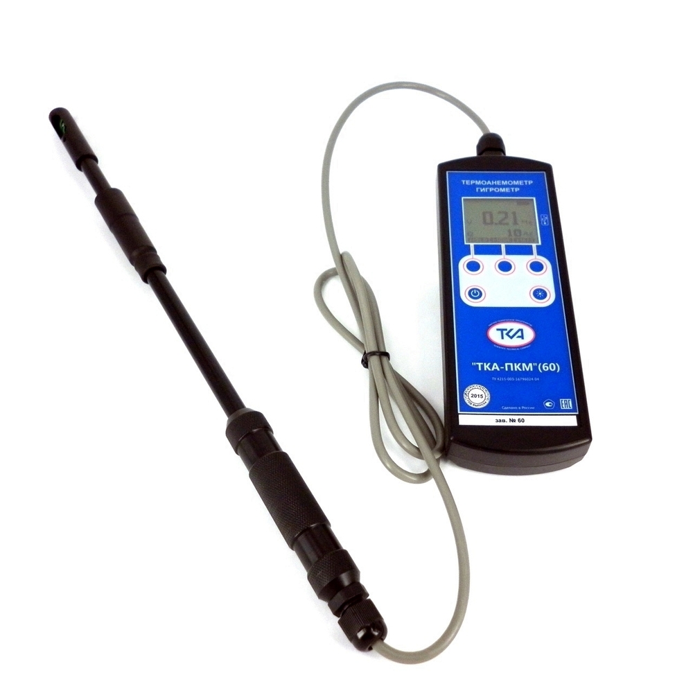 Анемометр-термогигрометр ТКА-ПКМ (60) предназначен для измерения скорости движения, температуры и относительной влажности воздуха внутри помещений с возможностью вывода информации на ПК.
